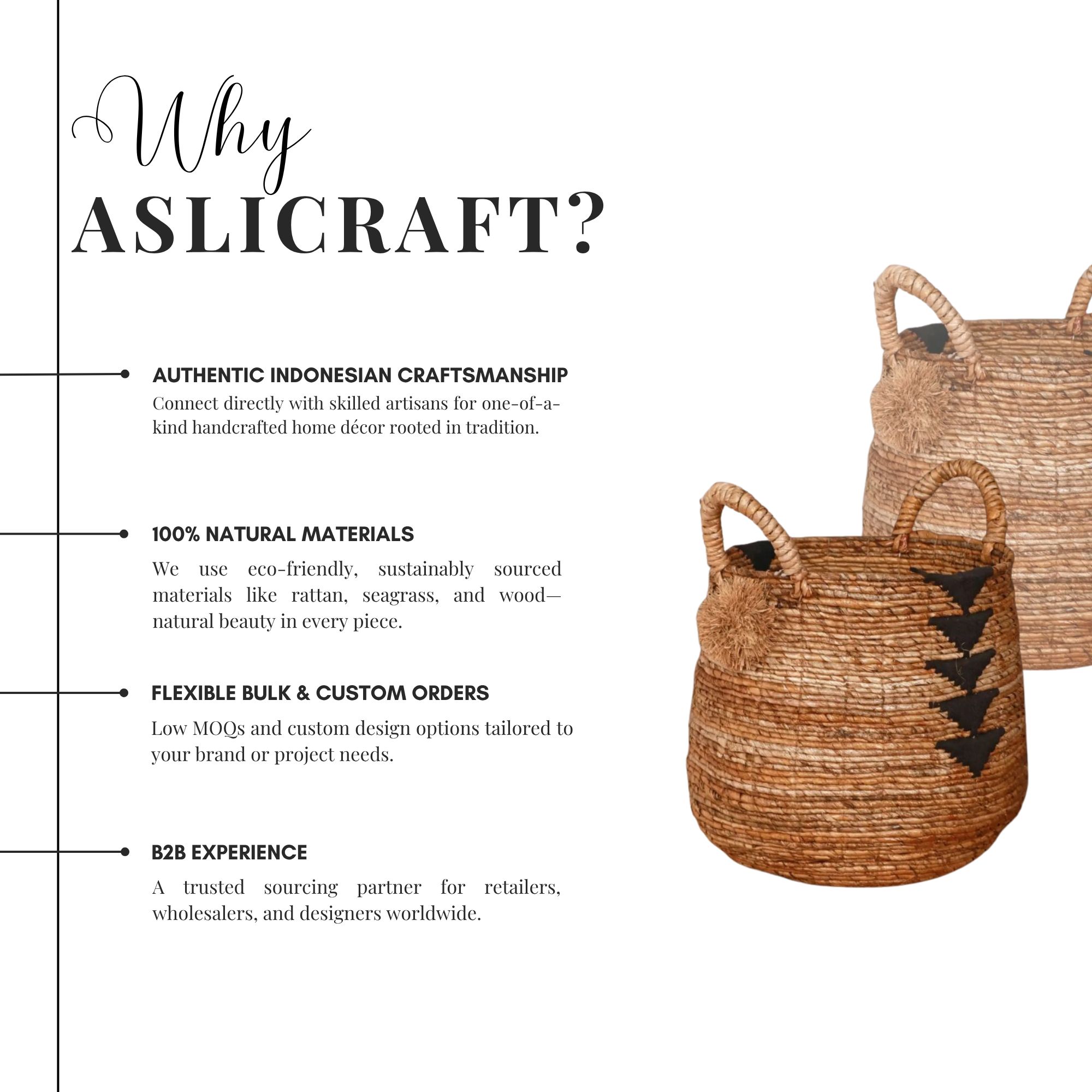 Crafted from 100% natural materials, each basket is handwoven by skilled Indonesian artisans, bringing warmth and character to
