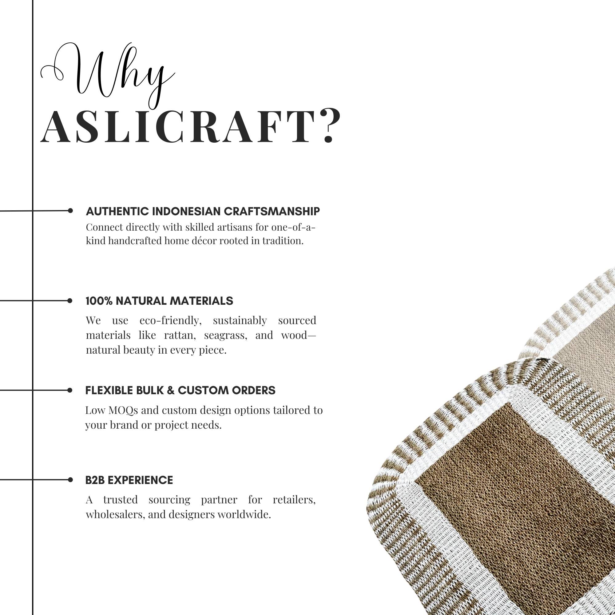 Add texture and warmth to any room with our handcrafted natural rugs. Each piece is skillfully woven by Indonesian artisans using sustainable materials such as water hyacinth, pandan, and seagrass — blending natural beauty with lasting comfort.