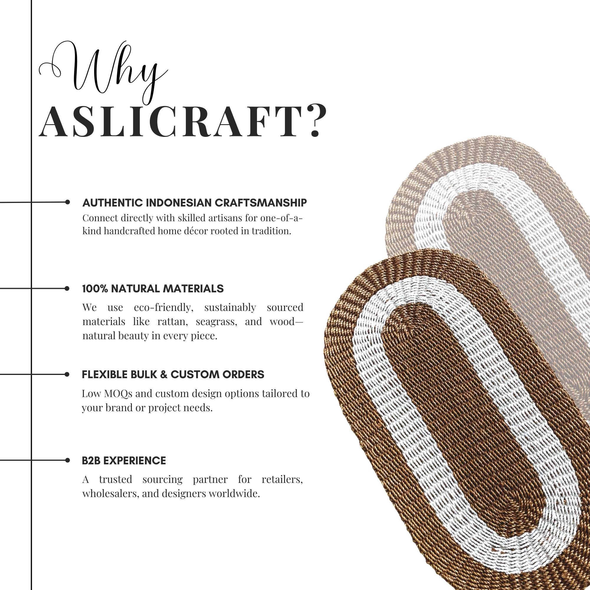 Add texture and warmth to any room with our handcrafted natural rugs. Each piece is skillfully woven by Indonesian artisans using sustainable materials such as water hyacinth, pandan, and seagrass — blending natural beauty with lasting comfort.