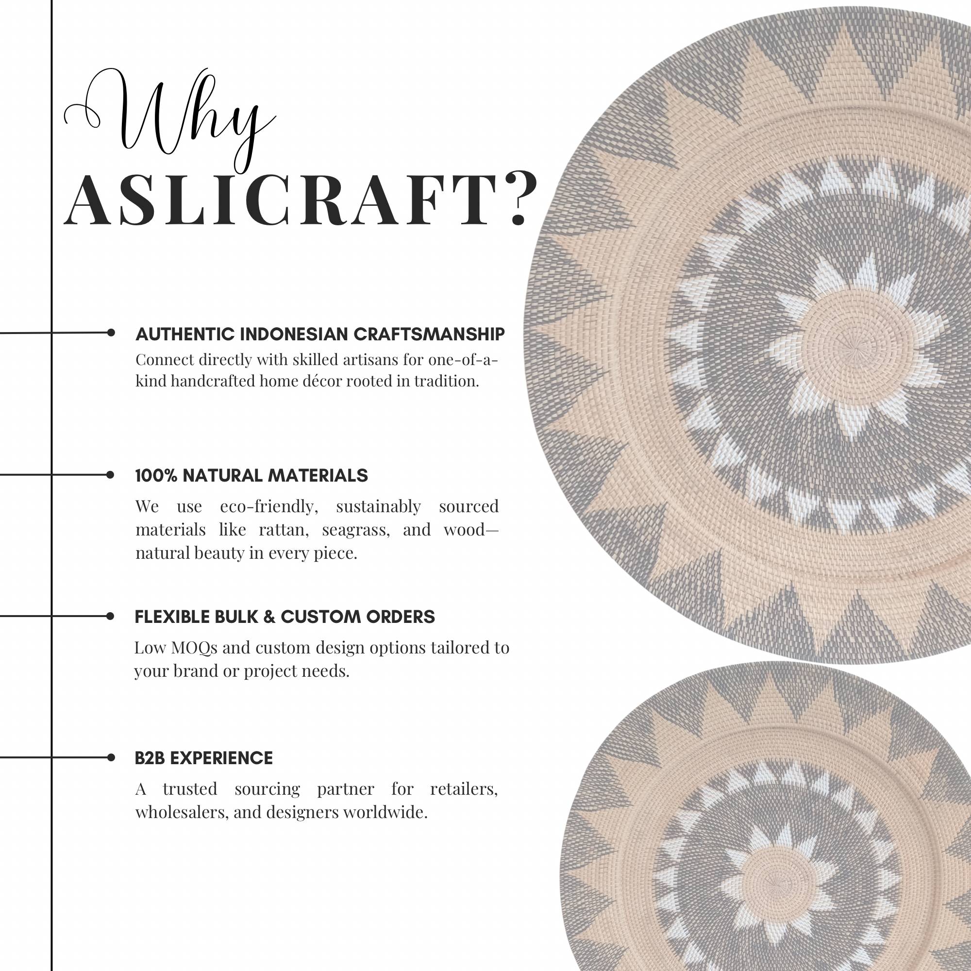 Bring organic warmth to your walls with our handcrafted natural wall art. Each piece is meticulously woven by skilled Indonesian