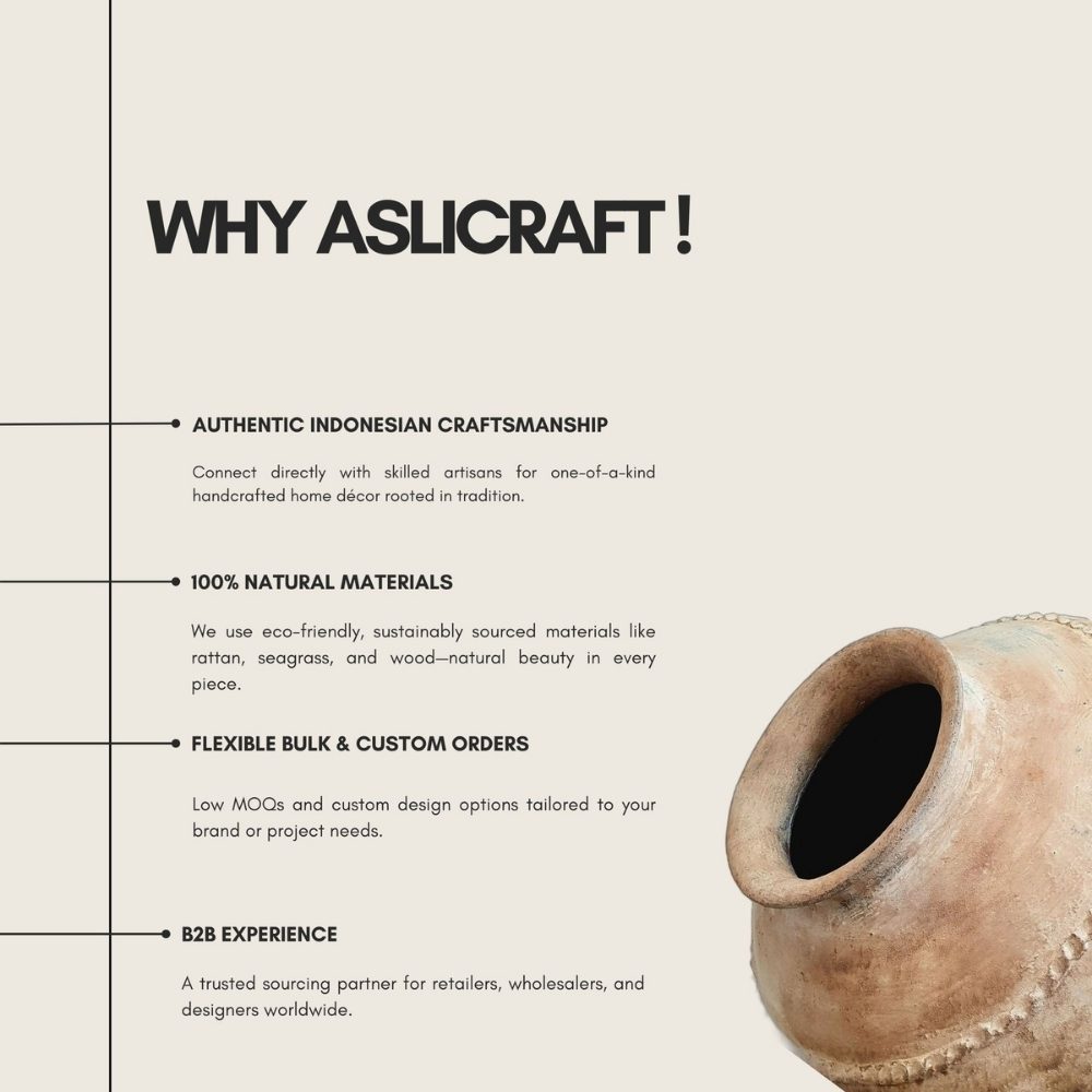 Crafted from high-quality terracotta clay, this piece showcases the beauty of traditional pottery with a natural, earthy finish. Each item is carefully hand-shaped and fired by skilled Indonesian artisans, giving it a warm rustic character and timeless aesthetic that fits perfectly in any home décor style— modern, bohemian, coastal, or classic.This terracotta pottery is not only decorative but also functional, offering multiple uses around the home.