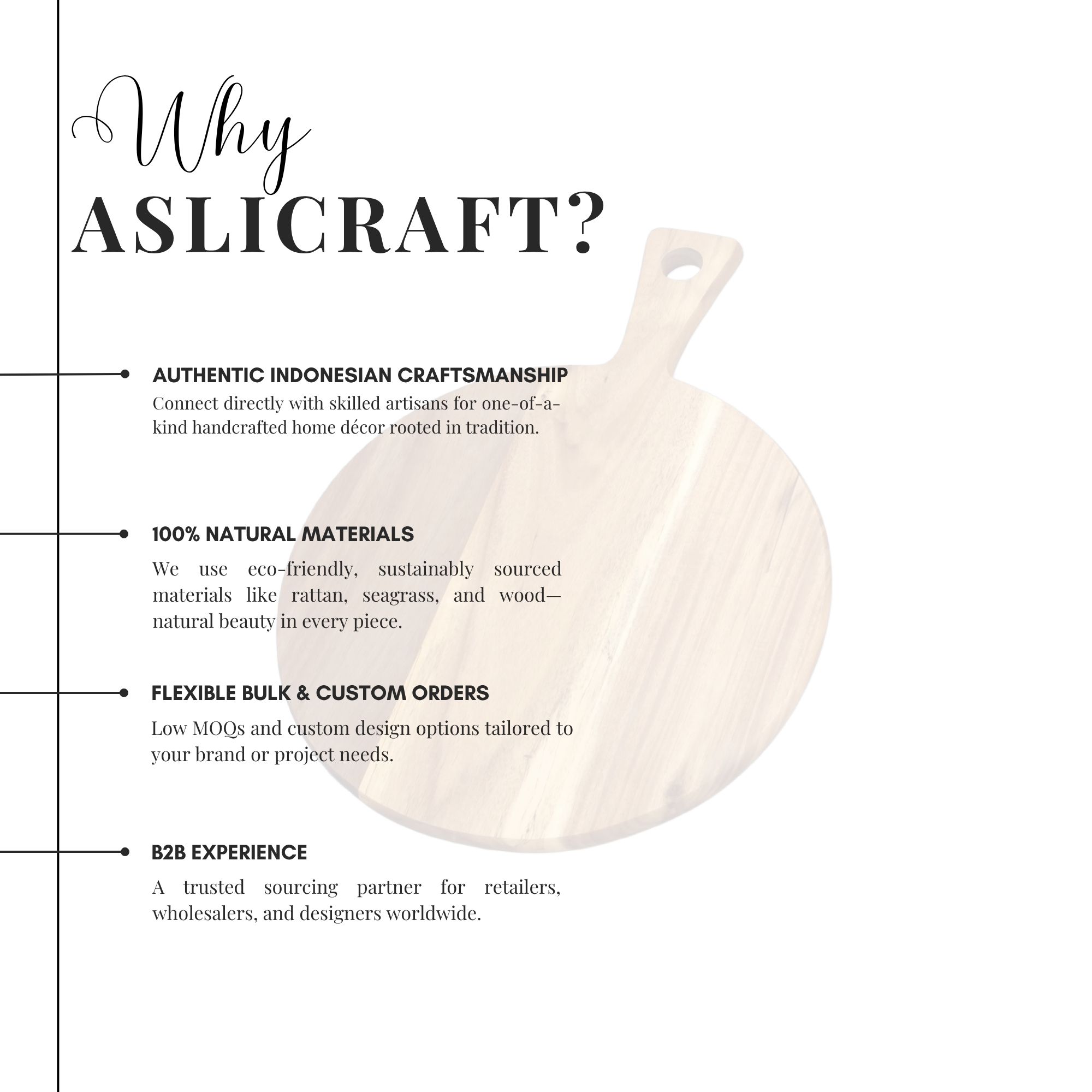 Perfect for everyday kitchen use, retail collections, restaurants, or thoughtful gift sets, this cutting board combines timeless design with long-lasting performance. We also offer custom sizes, laser branding, and tailored packaging to suit your business or gifting needs.