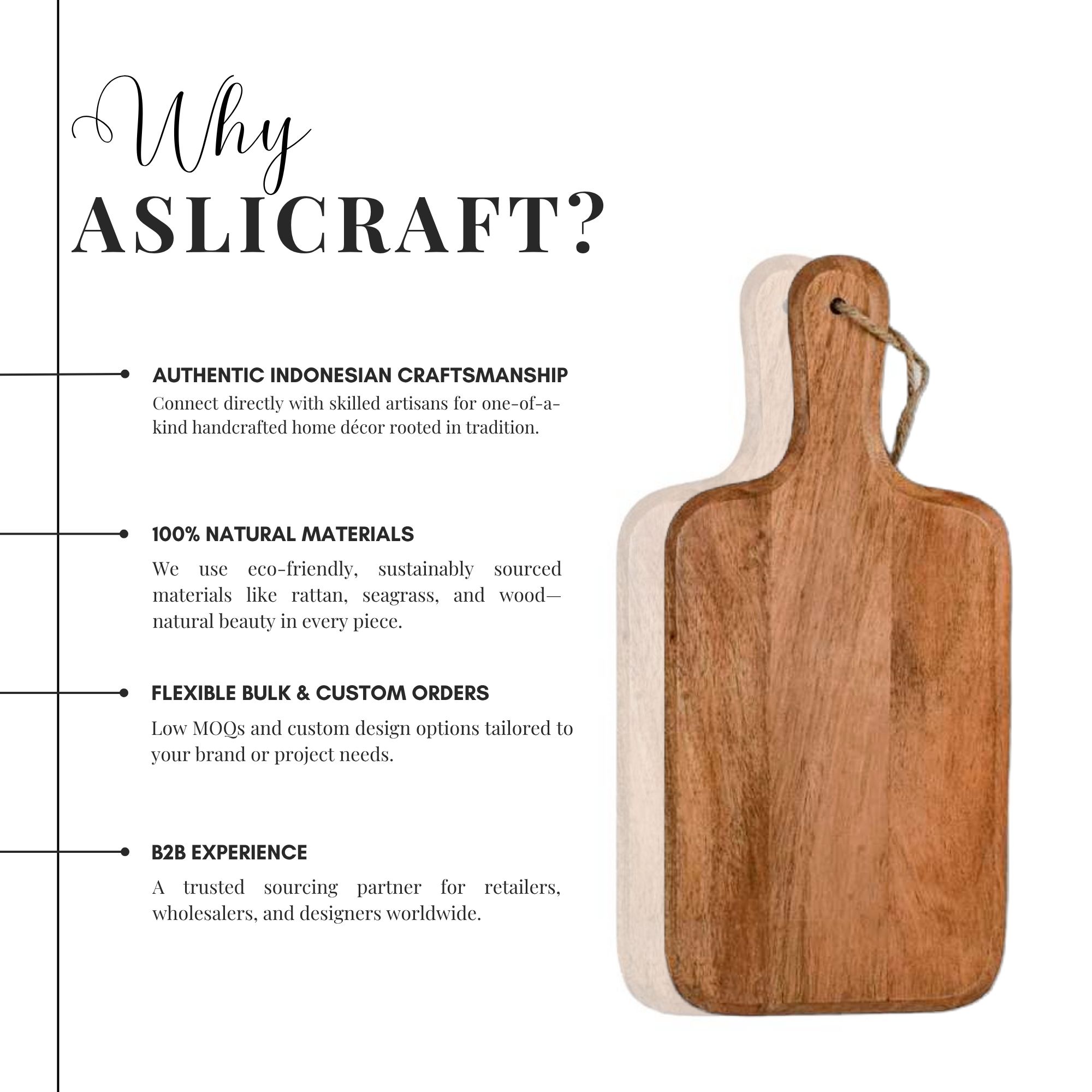 Perfect for everyday kitchen use, retail collections, restaurants, or thoughtful gift sets, this cutting board combines timeless design with long-lasting performance. We also offer custom sizes, laser branding, and tailored packaging to suit your business or gifting needs.