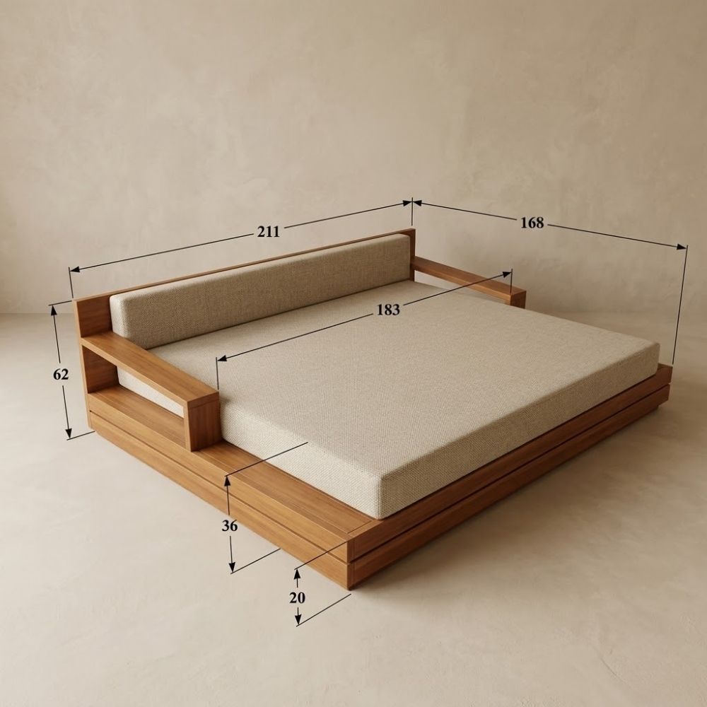 This design reflects that same sense of openness and calm. Its low, extended platform creates a feeling of space and balance, inviting moments of rest and stillness.