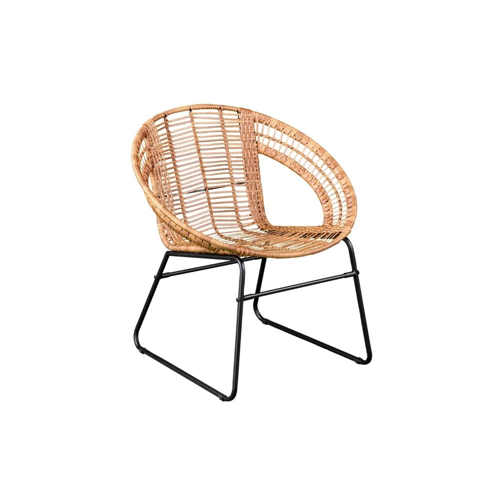 Round Lounge Chairs Made of Aluminum Frame and Woven Rattan with Natural Finish for Outdoor Use